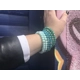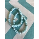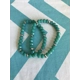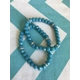 These handmade stretch bracelet sets are available in blue, light blue and green. Each set includes 2 bracelets. The light blue and blue sets feature blue glass beads and silver rhinestone accent beads. The green set features green glass beads and silver accent beads.